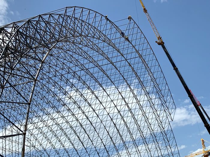 (2)网架加工前应对现场尺寸进行复测,确认无误后方可进行加工、安装;网架制作、运输、安装应遵守《空间网格结构技术规程》JGJ7-2010、《钢网架高平螺栓球节点》JG/T 10-2009、《钢网架高平螺栓球节点用高强度螺栓》 GB/T 16939-2016、《高平钢结构高平工程高平施工规范》 GB50755-2012、《高平钢结构高平工程高平施工质量验收标准》 GB50205-2020。